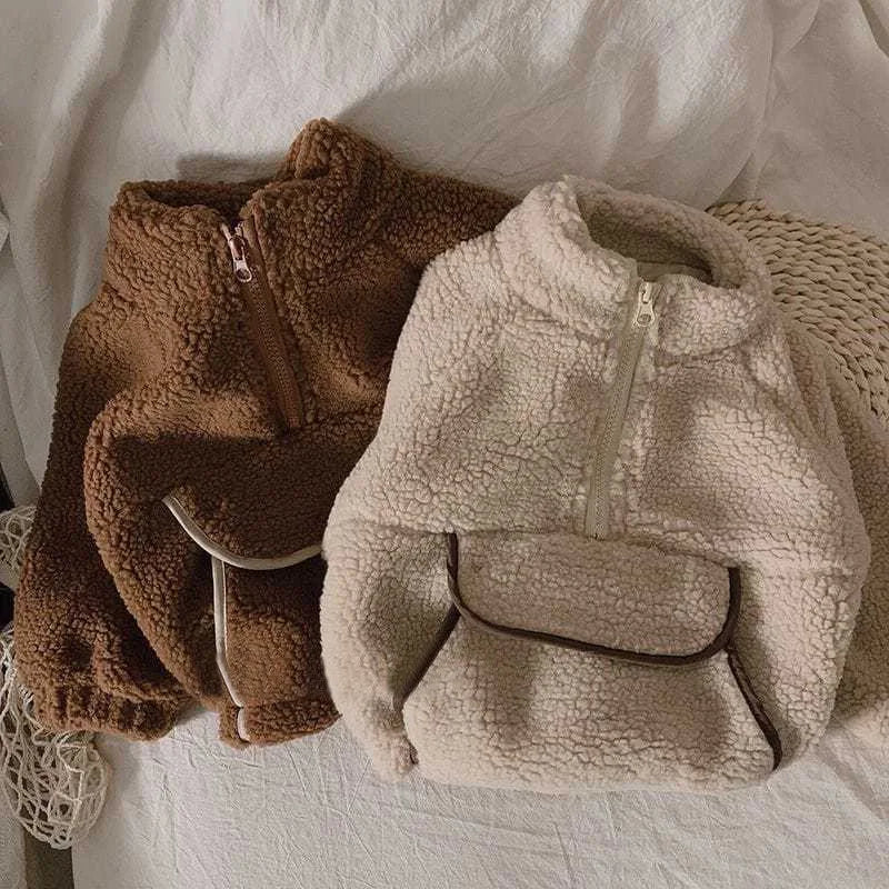 Kids' Lamb Wool Hoodie – Fleece Thickened Autumn/Winter Coat for Boys