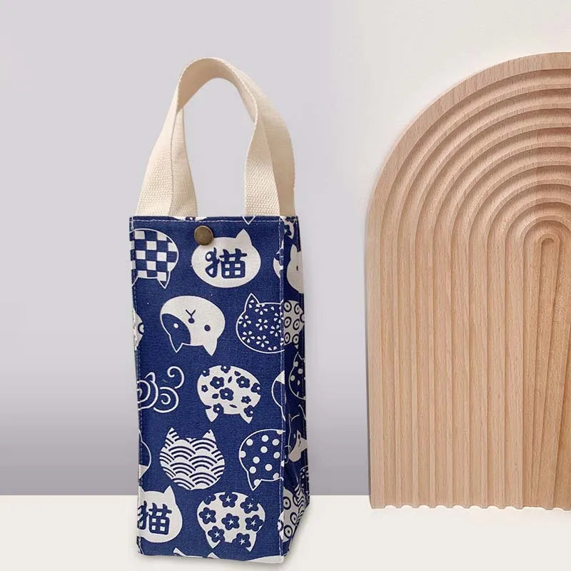 Cute Canvas Water Bottle Bag - Portable Tumbler Holder Sleeve for Thermos & Milk Tea