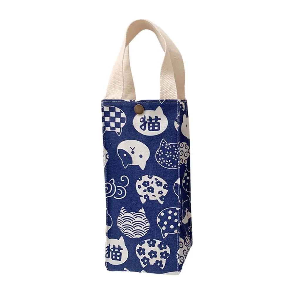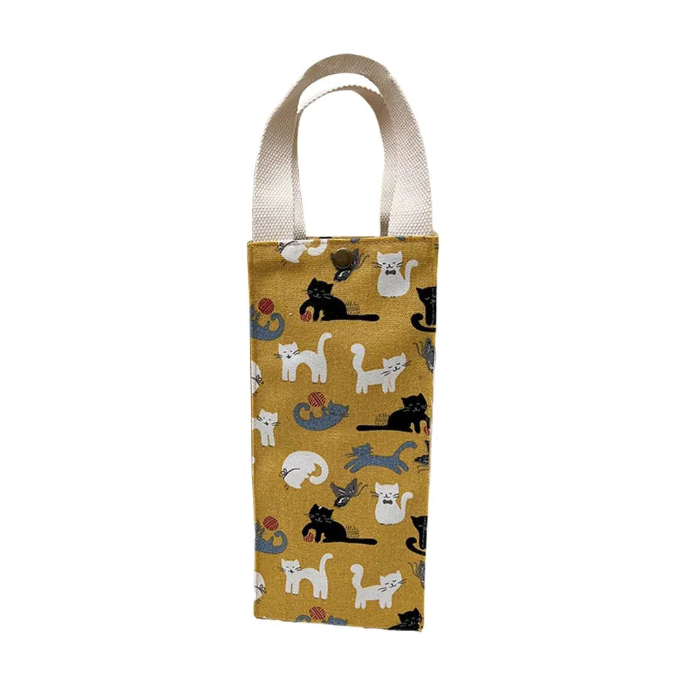 Cute Canvas Water Bottle Bag - Portable Tumbler Holder Sleeve for Thermos & Milk Tea
